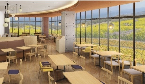 淡路島産の上質な食材を集め、花さじきの施設環境に最適なメニュー(リニューアルしたサンドイッチをはじめ、 各種軽食ランチやパフェ)をご用意しました。花さじきでのひとときをお過ごし方に、北欧デザインの心地の良い空間で、それらメニューをご提供いたします。