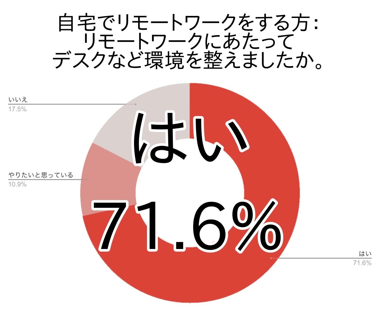 そこでアンケートでは、自宅でリモートワークをする方を対象に、リモートワークにあたってデスクなど環境を整えたか尋ねました。