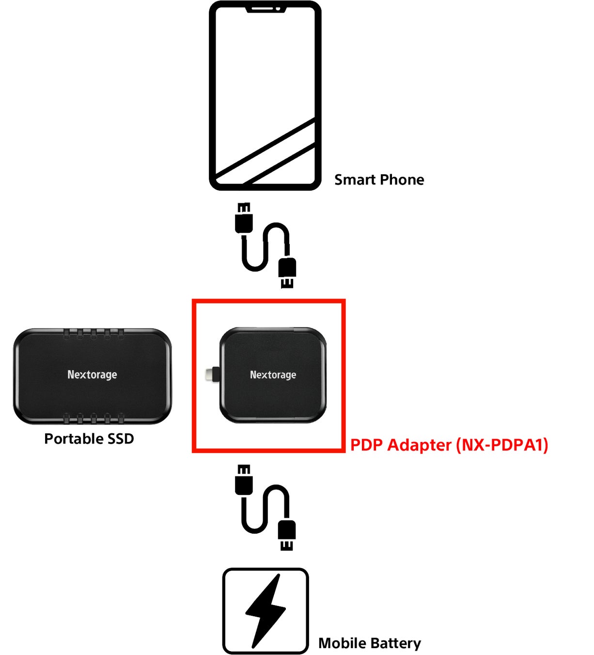 PDPアダプター NX-PDPA1 × 1台 + ポータブルSSD Gシリーズ(1 TB) NX-P2SE1TB/G× 1台
