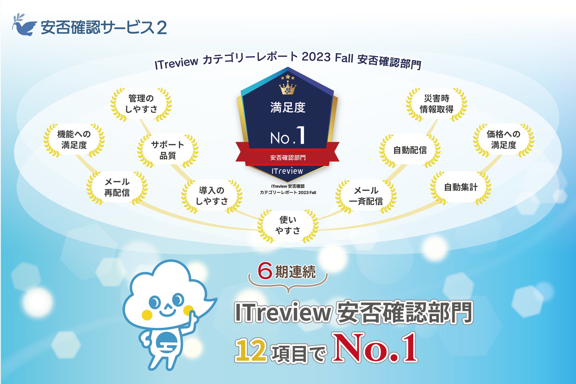 「ITreview カテゴリーレポート 2023 Fall 安否確認部門」6期連続で顧客満足度No.1に選出
