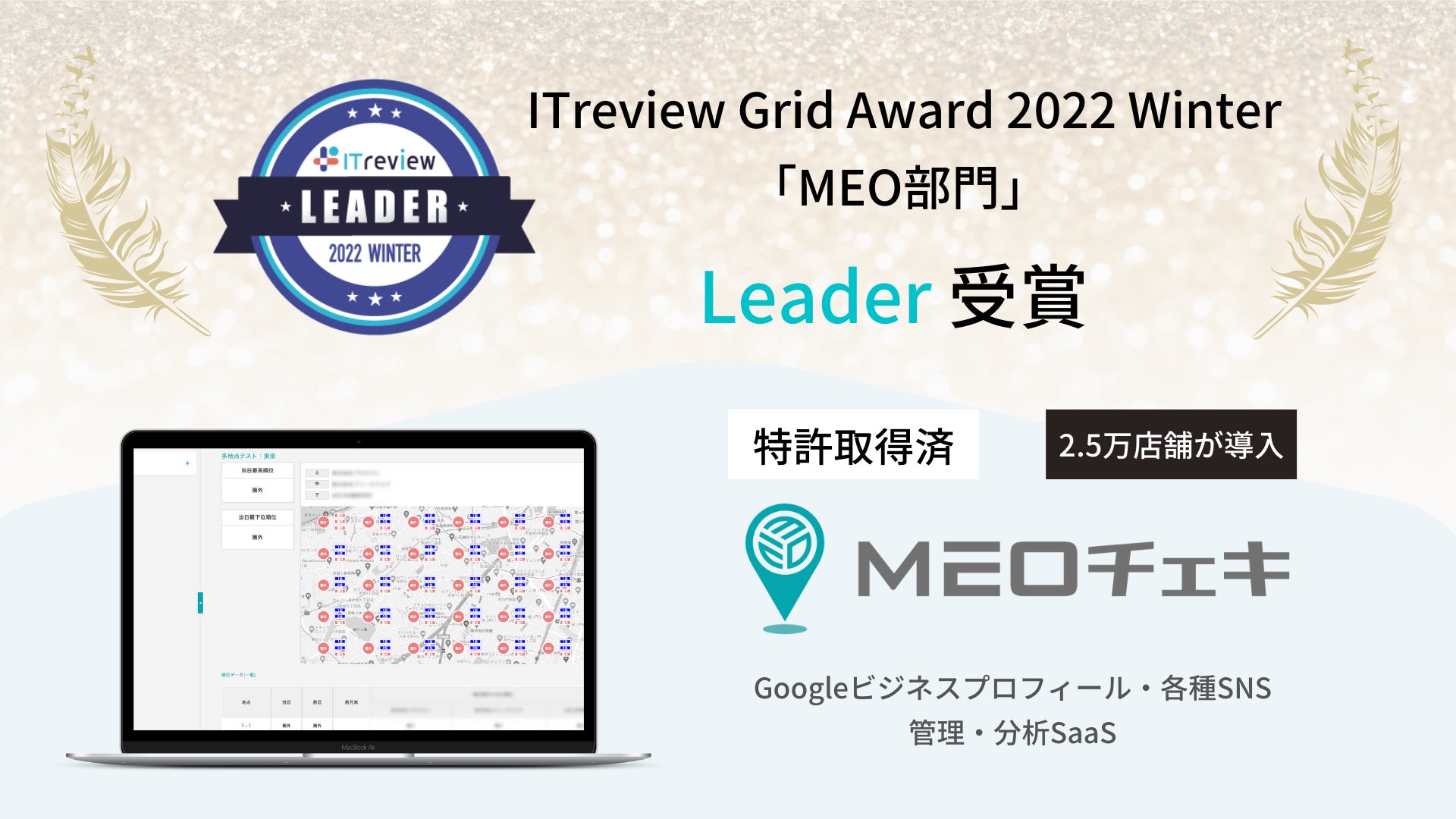 MEOチェキが「ITreview Grid Award 2022 Winter」のMEO部門において「Leader」を2期連続受賞!