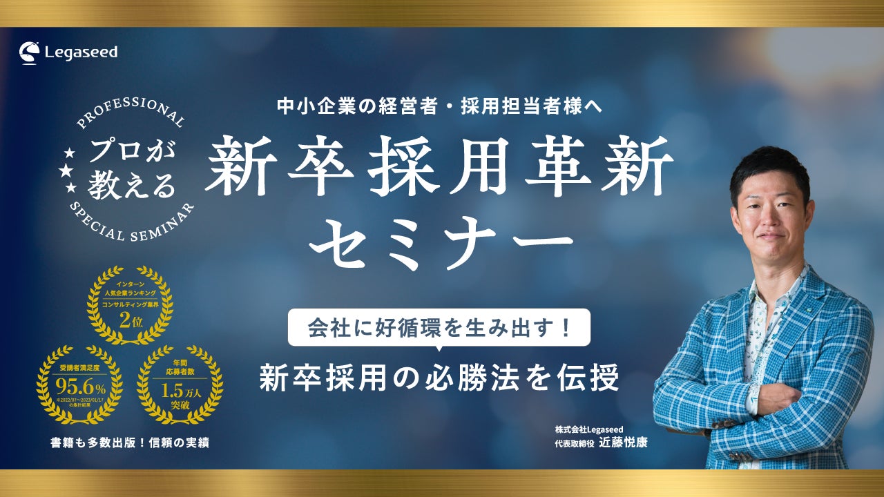 活躍する人材を増やし、企業価値を高めるパフォーマンスコンサルティングを行う株式会社Legaseed(代表取締役:近藤悦康、本社:東京都港区)は、人材戦略の裏側を大公開する「新卒採用革新セミナー」を実施しています。2023年12月21日時点で本セミナーは参加者が2900名を超えました。