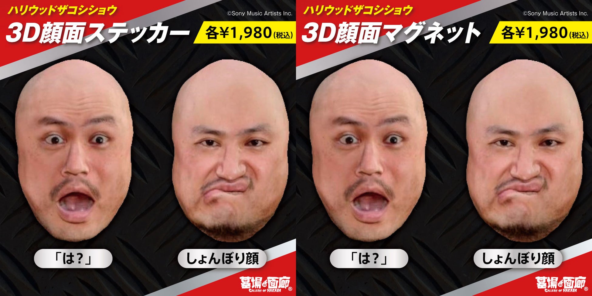 ハリウッドザコシショウ顔マグネット/ステッカー 各1,980円(税込)