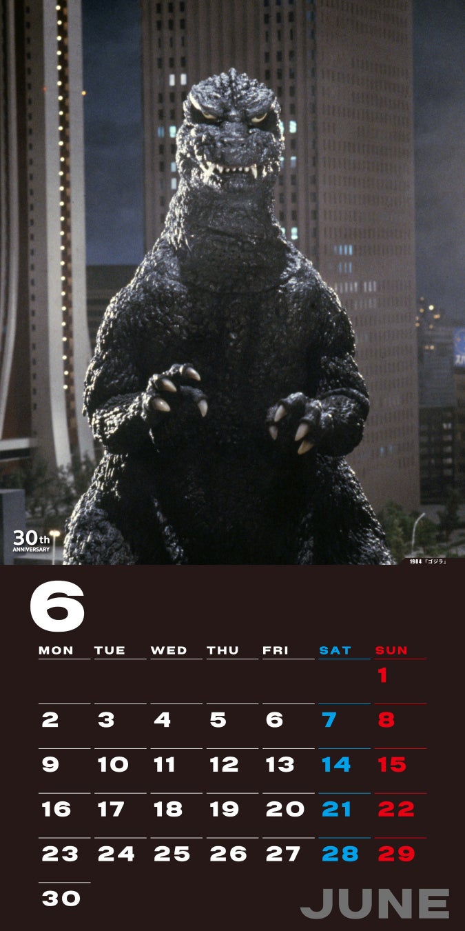 さらに、11月のページでは、昨年大好評を博した歴代30作品のゴジラを1ページに凝縮した特別レイアウトを再び採用。ゴジラの進化と歴史を一目で楽しむことができる、圧巻のページです。