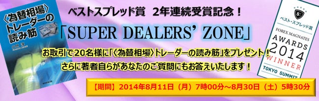 2014年8月11日(月)7時00分から2014年8月30日(土)5時30分の期間において「SUPER DEALERS' ZONE」のお取引を頂いたお客様。