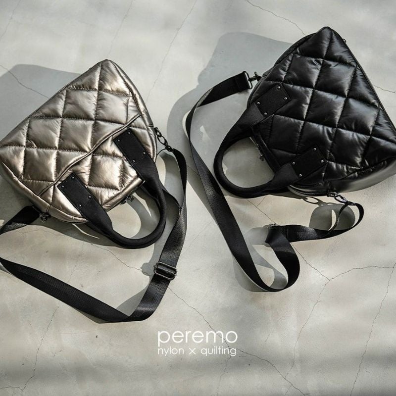 バッグブランド「HAYNI」から、大好評のキルティングバッグ『ペレモ』に、ショルダーベルトが取り付け可能な2wayデザインが新登場!バッグを置いた時に安心な「底鋲」も付いて、さらに使い勝手がよくなりました。