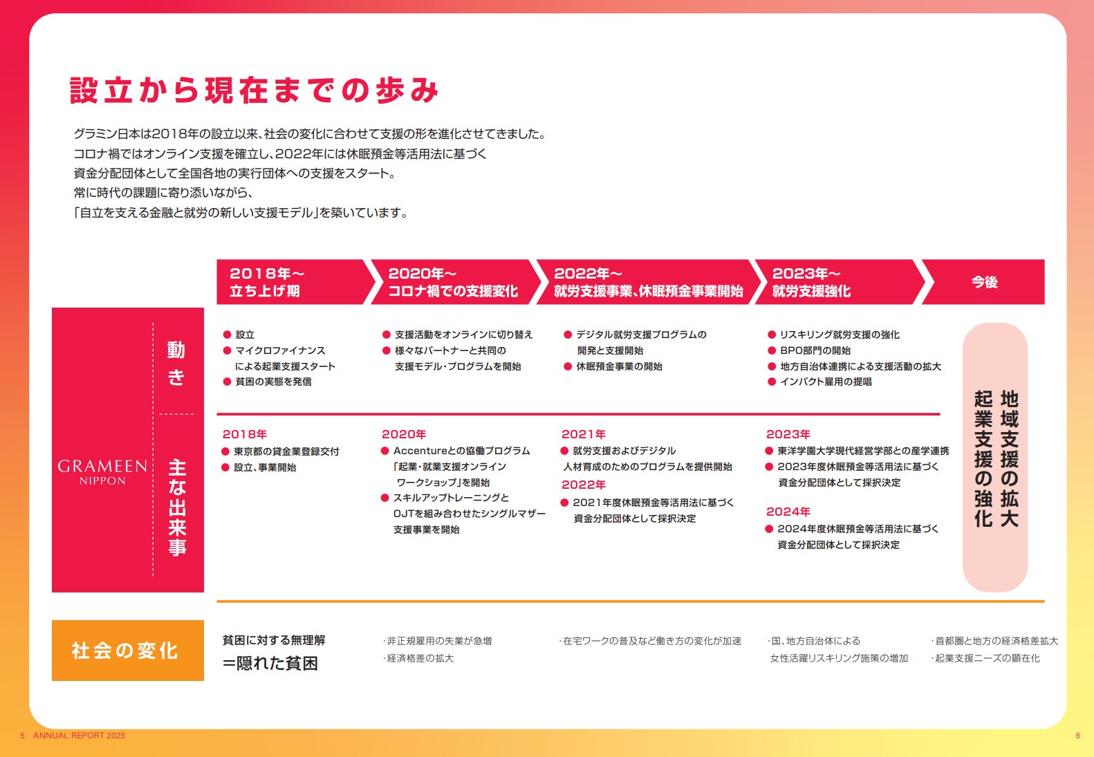 グラミン日本は2018年の設立以来、社会の変化に合わせて支援の形を進化させてきました。