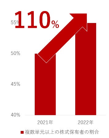 ギフト配布対象を複数単元以上の株式保有者に設定したことで、複数単元以上の株式保有者の割合が昨対比110%に改善