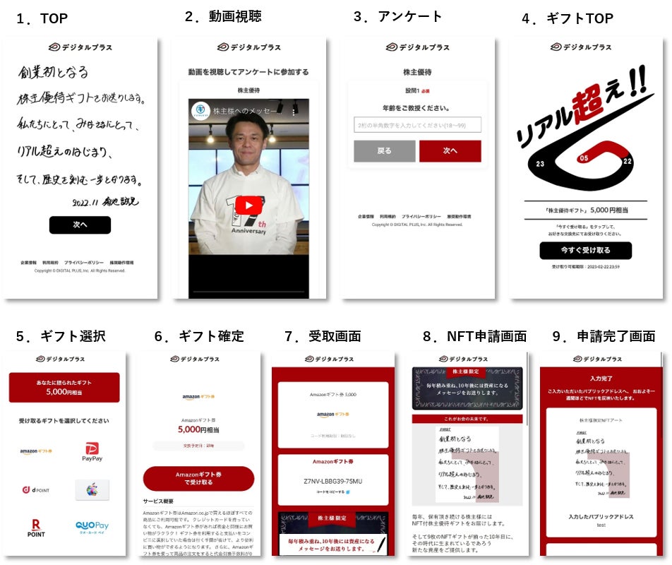 デジタルプラス社自らも新たな株主優待として「株主優待デジタルギフト」を導入し、複数単元以上の株主を対象にデジタルギフト及びNFTギフトをそれぞれ配布しました。
