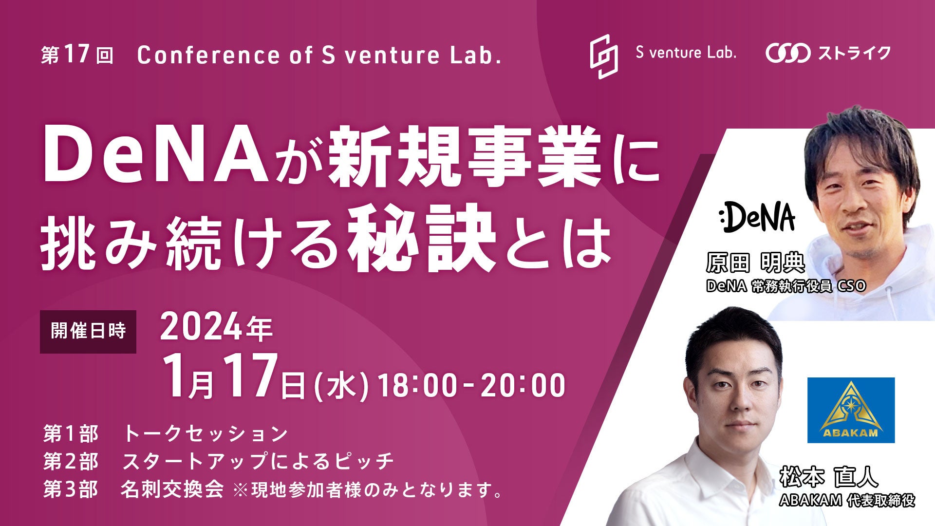 DeNA 常務執行役員 CSO 原田明典氏が登壇!<1月17日(水)開催>Conference of S venture Lab.
