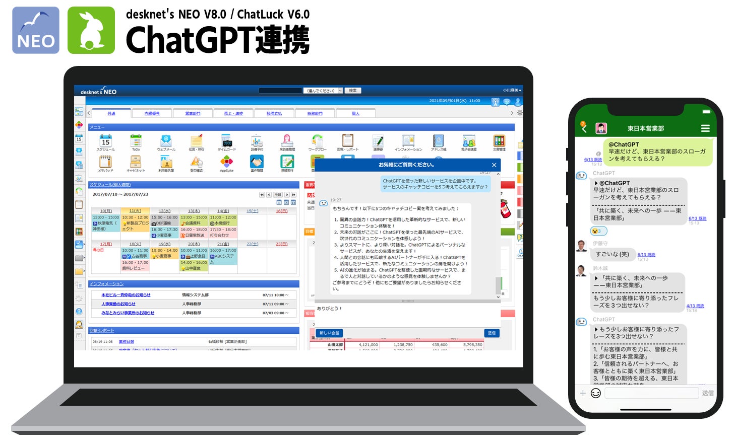 ネオジャパン、ChatGPT連携を実装したグループウェア『desknet's NEO』V8.0とビジネスチャット『ChatLuck』V6.0を提供開始