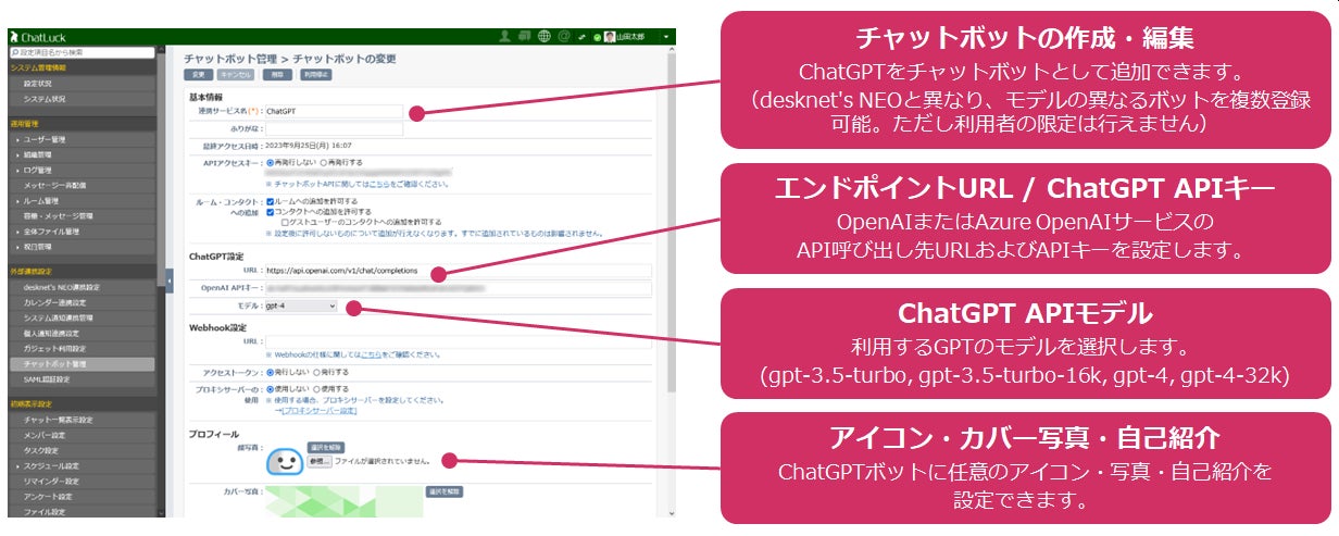 同機能はdesknet's NEO / ChatLuckの標準機能として搭載され、既にご利用中のお客さまは追加料金なく本機能を利用できます。(本機能の利用には、別途OpenAI社またはマイクロソフト社から取得できる「OpenAI APIキー」が必要になります)