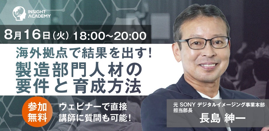 海外赴任者への研修に課題を感じていませんか?元ソニーの生産技術エキスパートである長島講師が、海外駐在員に求められる能力と育成方法を解説。無料オンラインセミナーの参加者募集中!