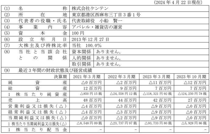 マーチャント・バンカーズ株式会社(以下、マーチャント社)は、本日開催の取締役会をもって、2024年4月30日付でマーチャント社連結子会社である株式会社ケンテンの全株式を譲渡することを決議いたしましたので、お知らせいたします。