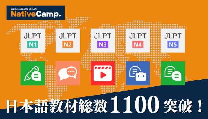 株式会社ネイティブキャンプ(本社:東京都渋谷区、代表取締役社長:谷川国洋)が提供するオンライン日本語会話サービス『Native Camp Japanese』は、このたび、日本語学習教材の総数が1100を超えましたことをお知らせいたします。