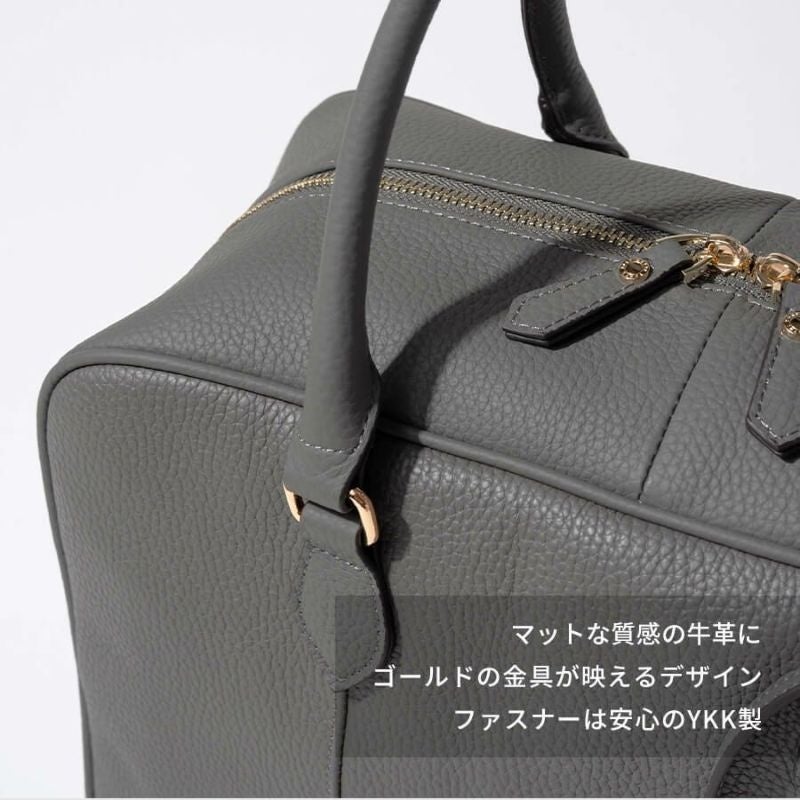 シンプルなスクエアフォルムのボストンバッグ。品のあるディテールが知的さを纏わせてくれるので、コーデの格をグンと引き上げてくれること間違いなしです。