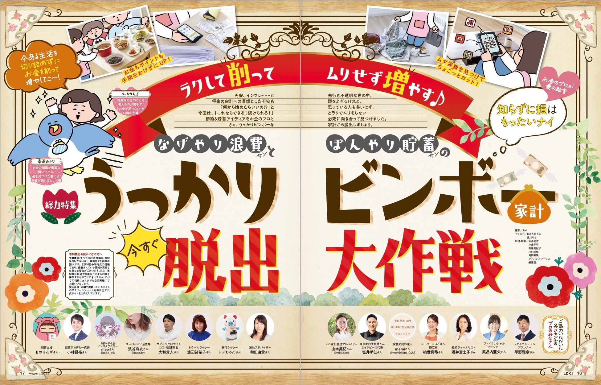 8月号では「うっかりビンボー家計脱出大作戦」を総力特集! 値上げラッシュに負けない「激安アプリ」や、くり返し使える消耗品など、“ラクして削ってムリせず増やす”テクニックやアイテムをたっぷりご紹介します。さらに、「プチプラ洗顔料ベストランキング2022」では、すっきり洗えてしっとりお肌に導く最強の1本を発表。そのほかにも、「ダイソー感動アイテムランキング」と、「お片づけのベストアイディア」の小冊子が特別付録として付いてくるとってもお得な号となっています! 本リリースでは、編集部が“本当におすすめできる”製品の⼀部をご紹介します。