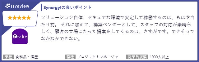 ITreviewに投稿のあったSynergy!ご利用のお客様からのレビューの一部を紹介します。