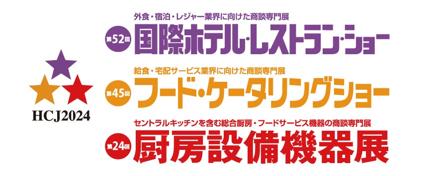 HCJ2024は、ヒト・モノ・情報の交流と発信を通じて、日本のサービス産業が進化していくための情報発信、ビジネスマッチングの創出を目的に、ホスピタリティとフードサービスの商談専門展として開催します。HCJ2024は、「第52回 国際ホテル・レストラン・ショー」「第45回 フード・ケータリングショー」「第24回 厨房設備機器展」から構成される三展示会の総称で、826社、2,147ブース(予定)が出展します。
