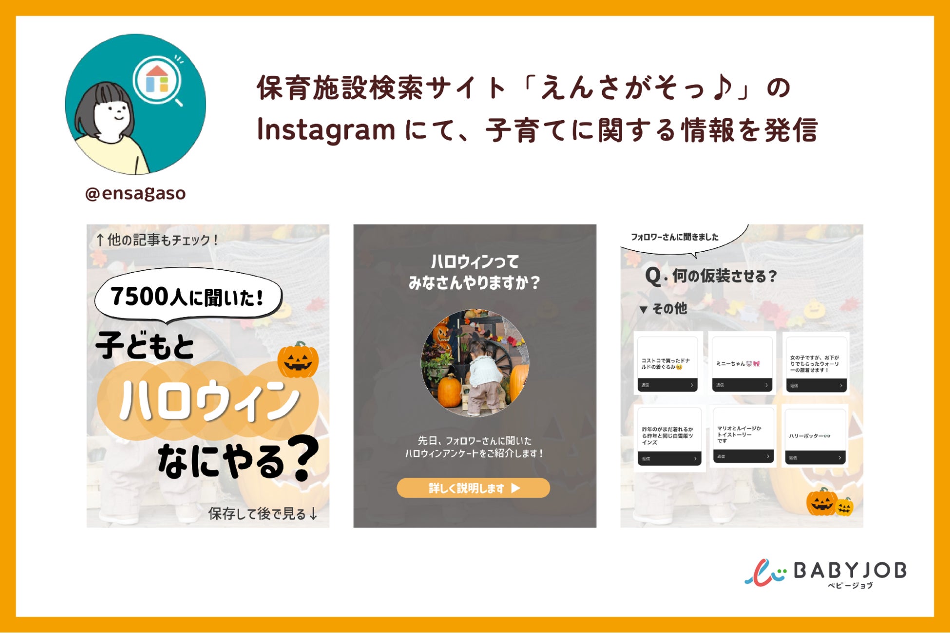今回のアンケート結果をもとに、BABY JOBではSNSを通じて子どもとのハロウィンの楽しみ方に関する情報を発信しております。