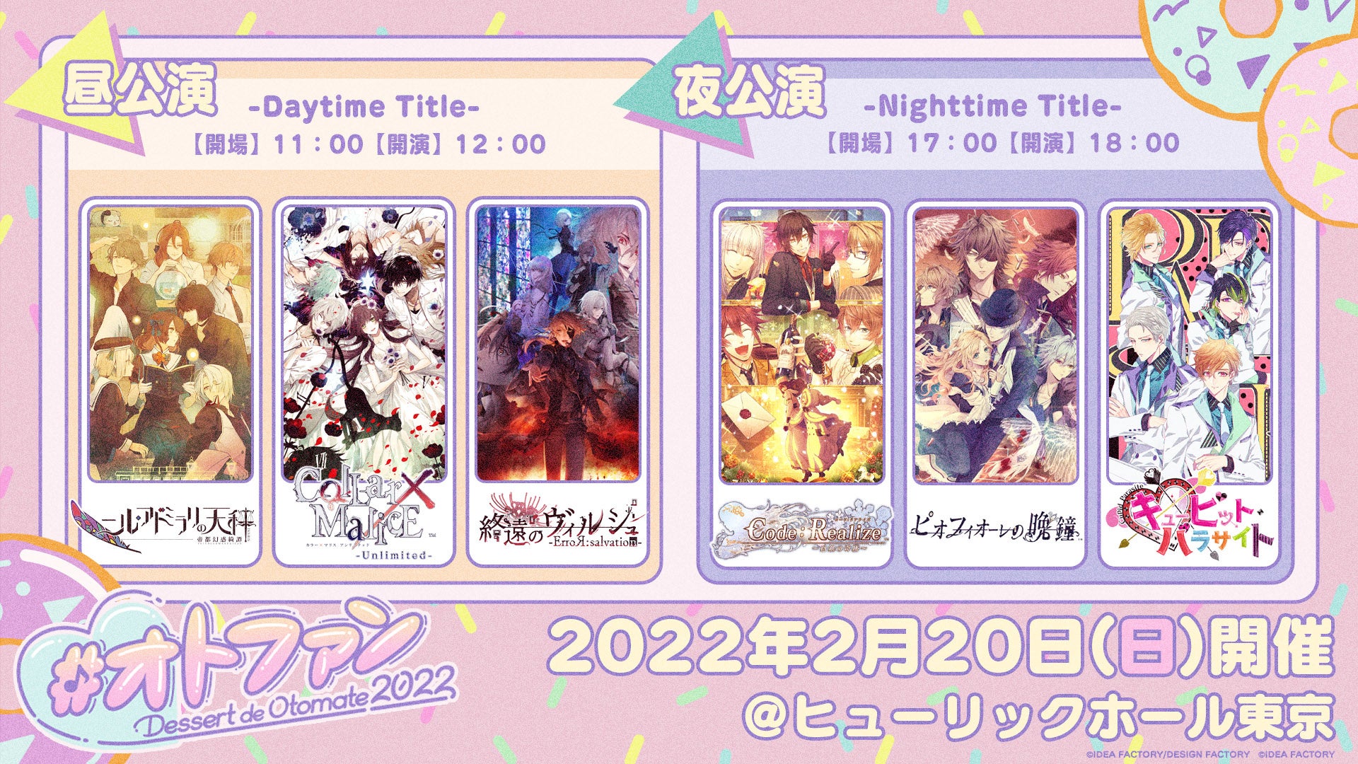アイディアファクトリー株式会社の女性向けゲームブランド「オトメイト」は、2022年2月20日(日)開催予定「Dessert de Otomate 2022」の会場チケットの一般販売を開始いたします。またイベント内の朗読劇あらすじを公開いたしました。