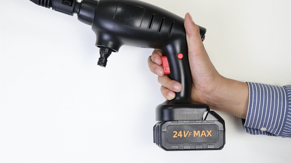軽量・コンパクトで取り外し式の大容量バッテリーを内蔵しており、さらに自吸式設計のため、電源や水道が近くにない場所でも使用できます!