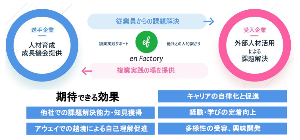 エンファクトリーはリロクラブ社と共に、『越境学習』プログラムにより従業員が得た学び・知見を組織へ還元することで、挑戦的な組織の風土づくりをサポートしてまいります。