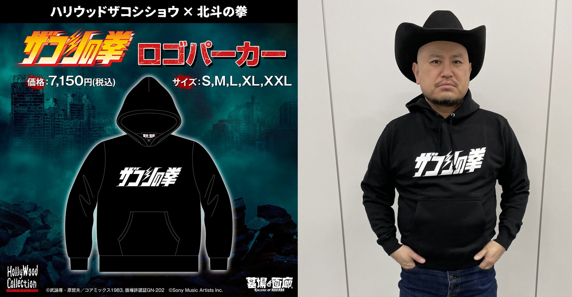 ハリウッドザコシショウ × 北斗の拳 ザコシの拳公式ロゴ プルオーバーパーカー (S〜XXL) 7,150円(税込)