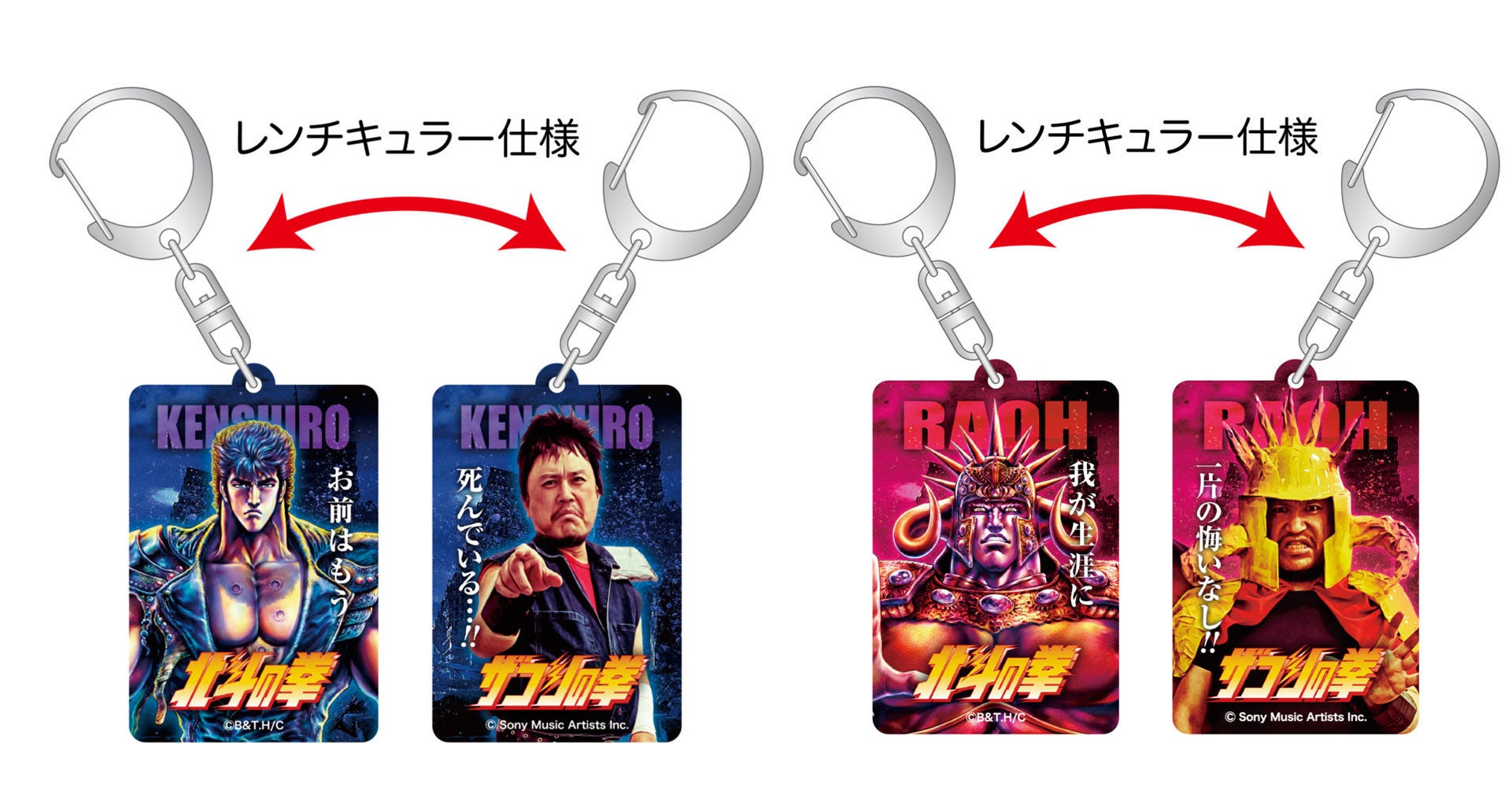 ハリウッドザコシショウ × 北斗の拳 アクリルキーホルダー 各880円(税込)