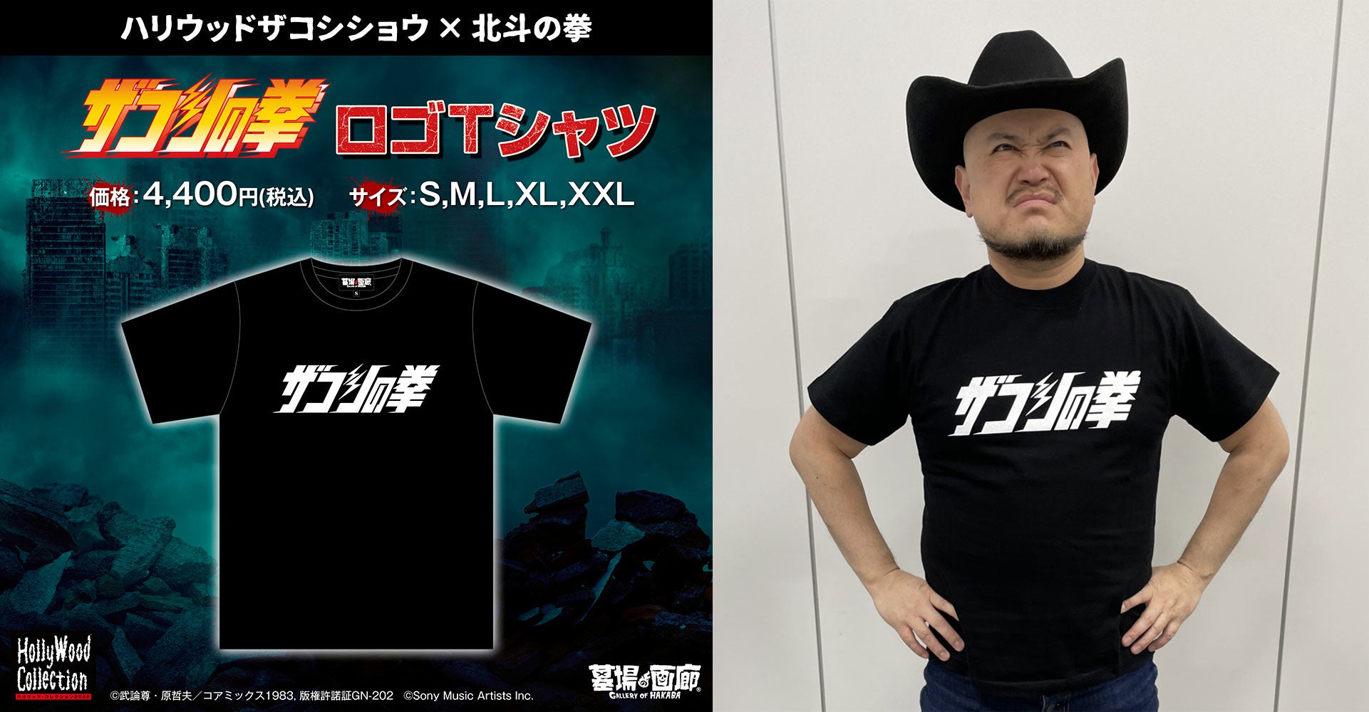 ハリウッドザコシショウ × 北斗の拳 ザコシの拳公式ロゴ Tシャツ (S〜XXL) 4,400円(税込)