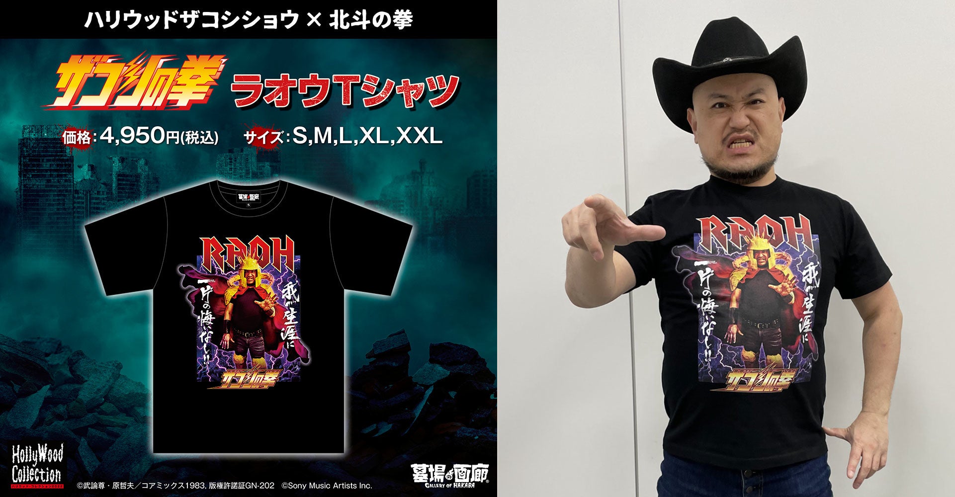 ハリウッドザコシショウ × 北斗の拳 ラオウ Tシャツ (S〜XXL) 4,950円(税込)