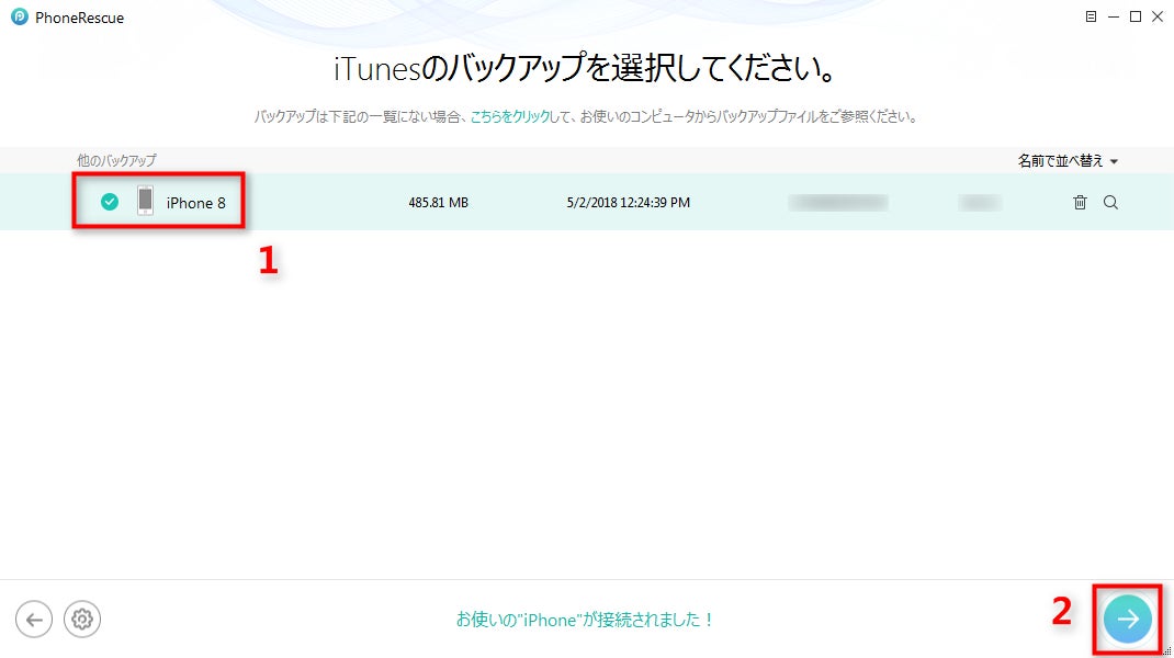 Step 2: 復元したいデータのあるバックアップを選択します。