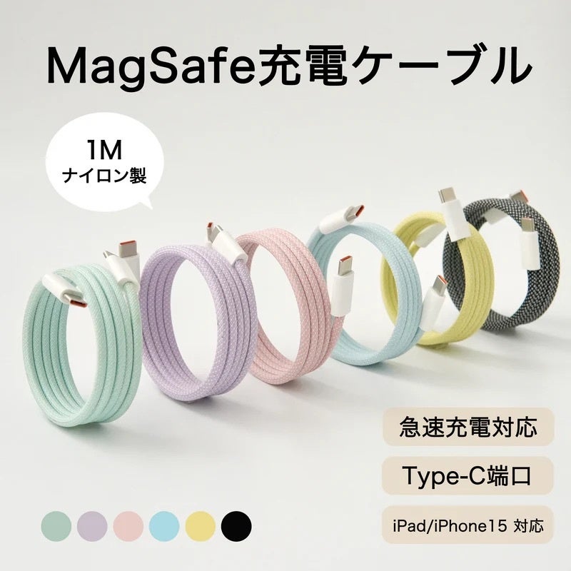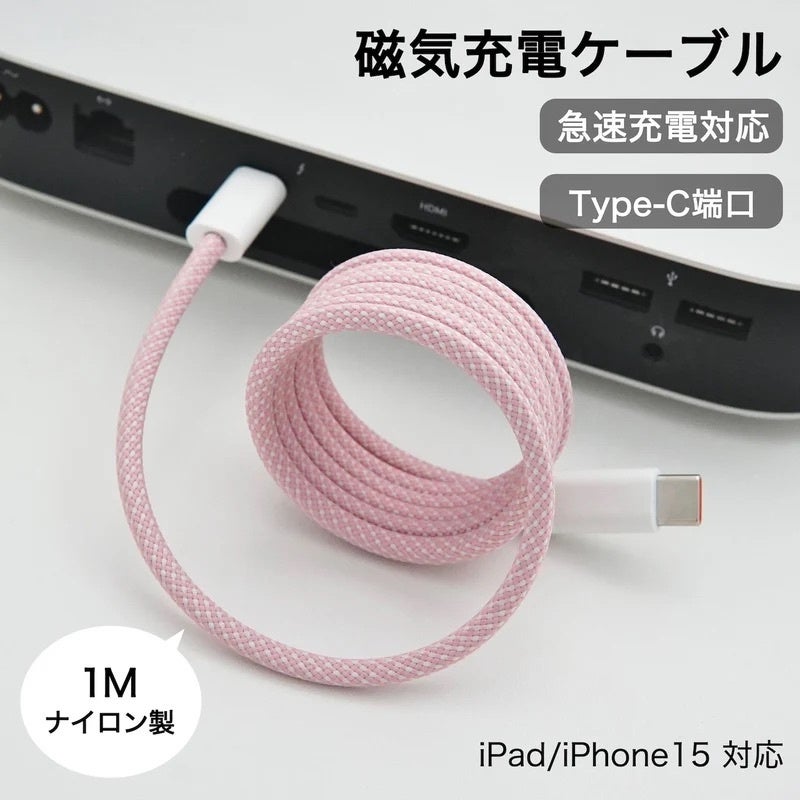 商品名: ピタッと自動収納ナイロン製Type-Cケーブル(全6カラー)