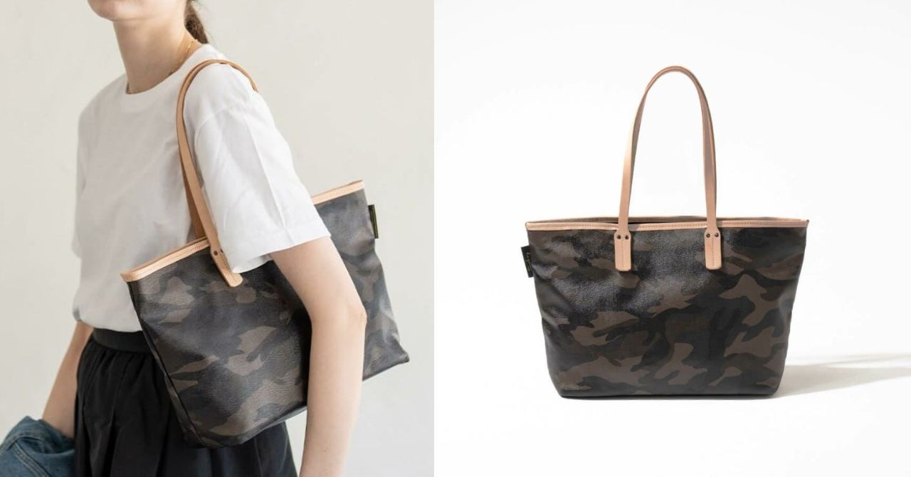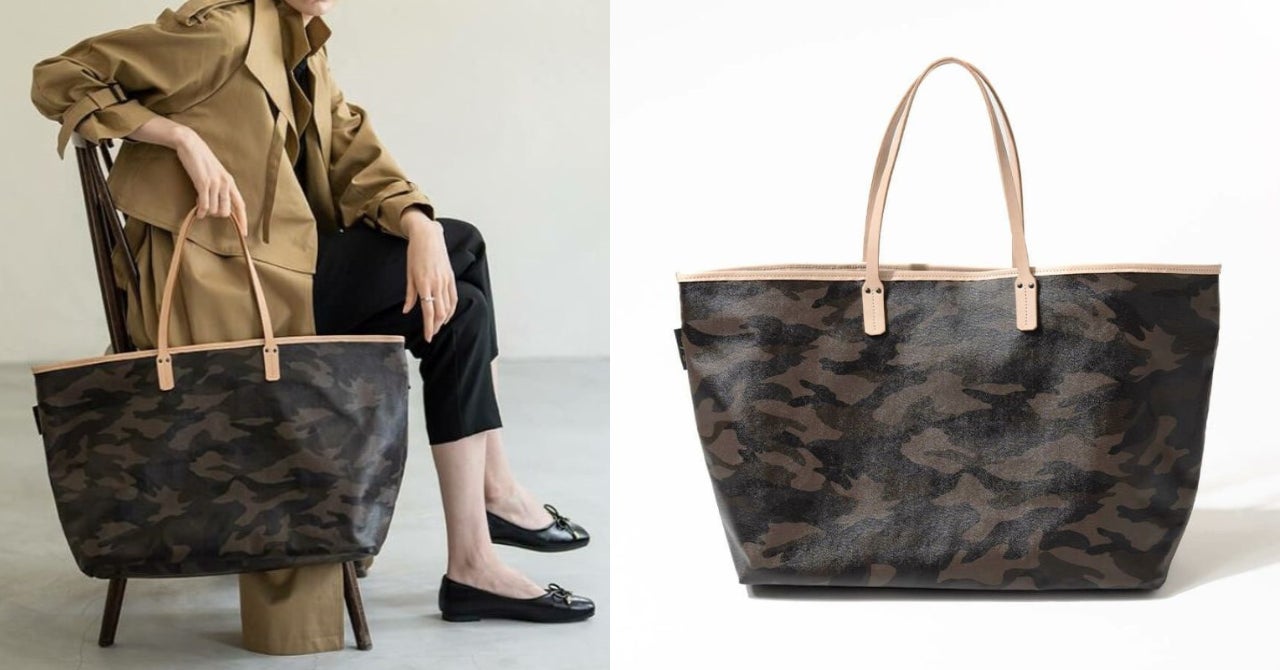 日本製の丁寧な縫製と上品な迷彩柄が、いつものコーデを格上げするトートバッグ。