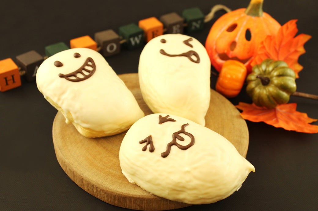 お茶目な顔をしてこちらを見つめる真っ白なおばけ達。その中には、たまごのコクと北海道産牛乳のコクを生かした、こだわりのカスタードクリームが入っています。ひとつずつ個性があって、どの子を選ぶか悩んでしまいます。お気に入りのおばけを持ち帰ってくださいね!