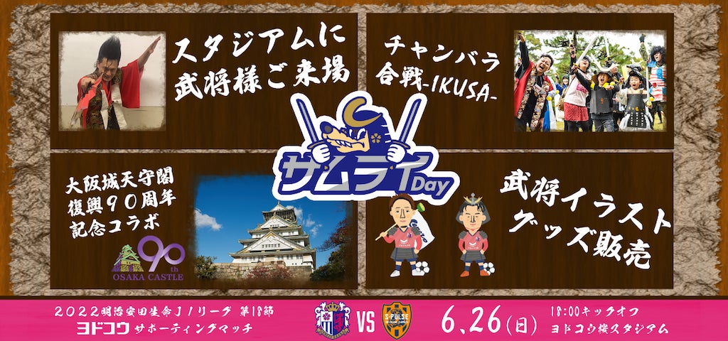 武将風選手イラストグッズの販売や吉本興業のミサイルマン岩部さんの大人気キャラ「武将様」の来場、チャンバラ合戦―戦 IKUSA―の実施などを予定しております。