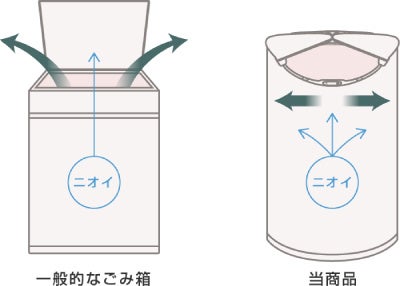 さらに横開きの蓋はゴミ箱上部のスペースを確保する必要がないため、比較的設置しやすいというメリットがあります。設置スペースの自由度が高いため、棚の下やテーブルの下などにも置いてお使いいただけます。