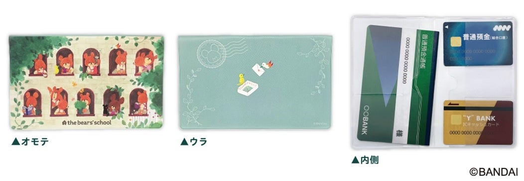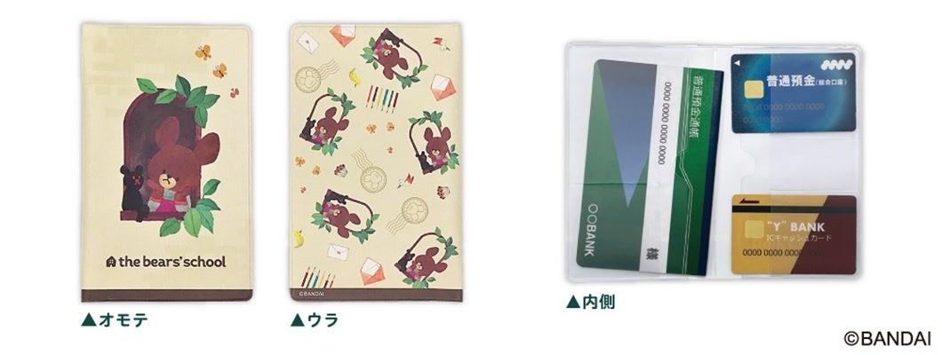 通帳2冊とカード4枚が入るPVC製の通帳ケース。くまのこ全員が揃っているアートを全面に入れたデザインです。(ヨコ型仕様)