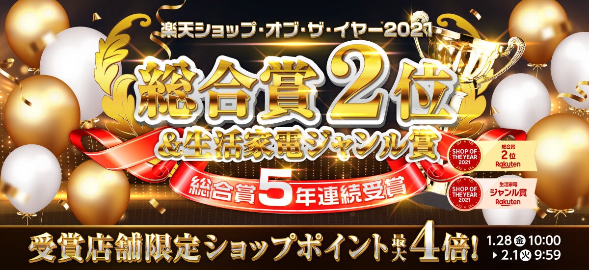 エクスプライス株式会社(本社:東京都江東区、代表取締役社長:稲積憲)が運営する家電EC「XPRICE楽天市場店」は、「楽天ショップ・オブ・ザ・イヤー2021」にて総合賞2位ならびに生活家電ジャンル賞を受賞しましたのでお知らせします。