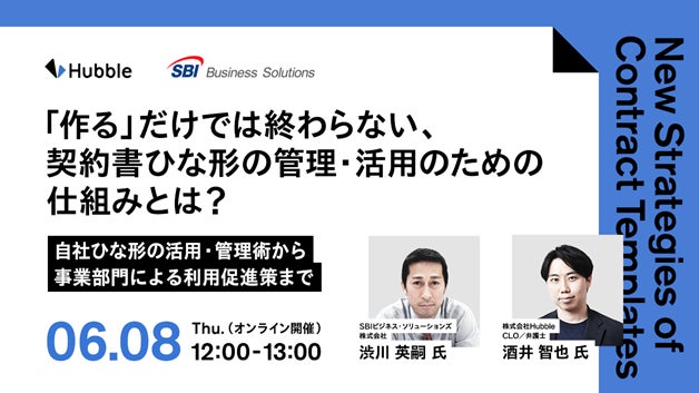 【法務担当者必見!】Hubble、SBIビジネス・ソリューションズ社と「契約書ひな形徹底活用!「作る」だけでは終わらない、契約書ひな形の管理・活用のための仕組みとは?」セミナーを開催!