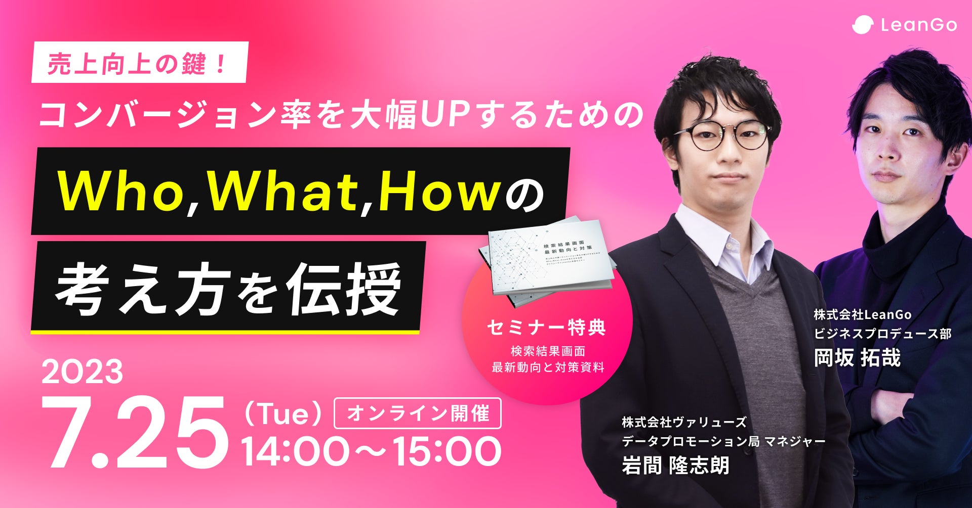 コンバージョン率を大幅UPするためのWho, What, Howの考え方を伝授 | LeanGoがヴァリューズとウェビナーを共催