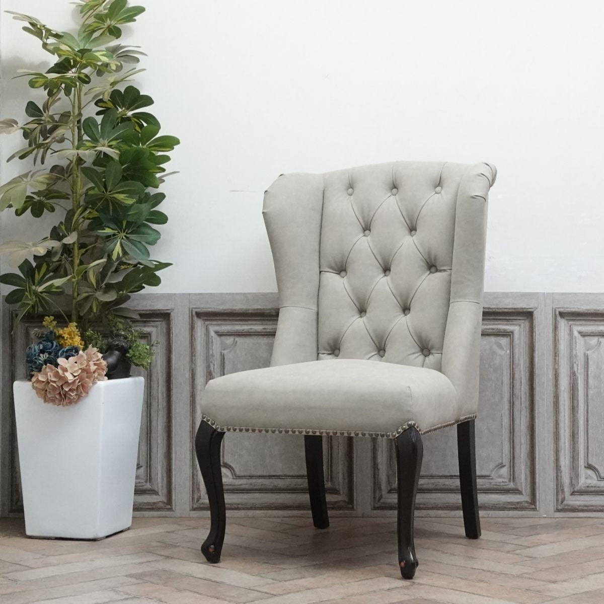 チェスターフィールドソファのウィングチェアからデザインしたハイバックチェア。