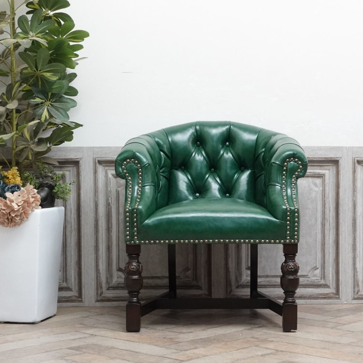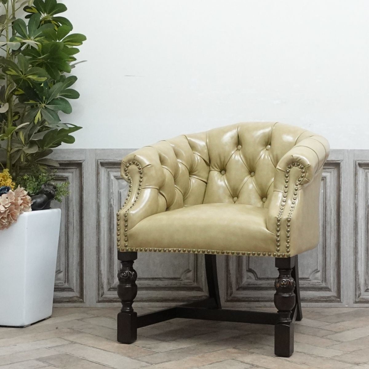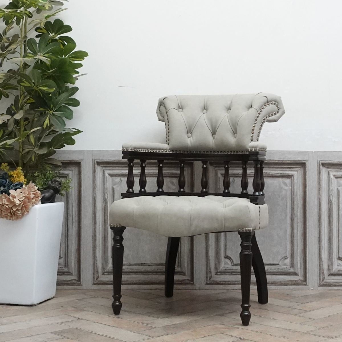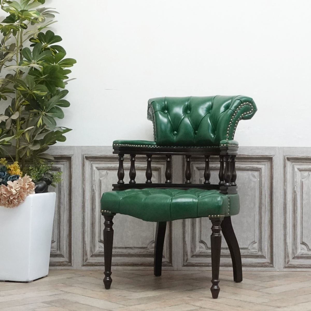 英国アンティーク家具の中でもキャプテンチェアとして人気のアイテムを復刻したモデル。