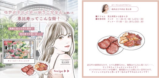 街の情報やおすすめスポットをイラストで紹介するWoman.CHINTAI Instagramでは、ゆうこすさんが在住経験のある『恵比寿』についてご紹介しています!恵比寿に住むと決めた理由、恵比寿での思い出、おすすめのスポットなどについて知ることができる投稿となっています。