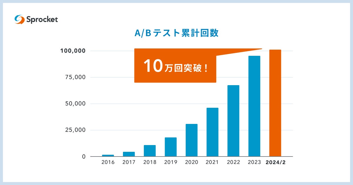 2016年にSprocketを正式リリースしてから実施してきたA/Bテストの回数が、2024年2月時点で10万回を突破しました。