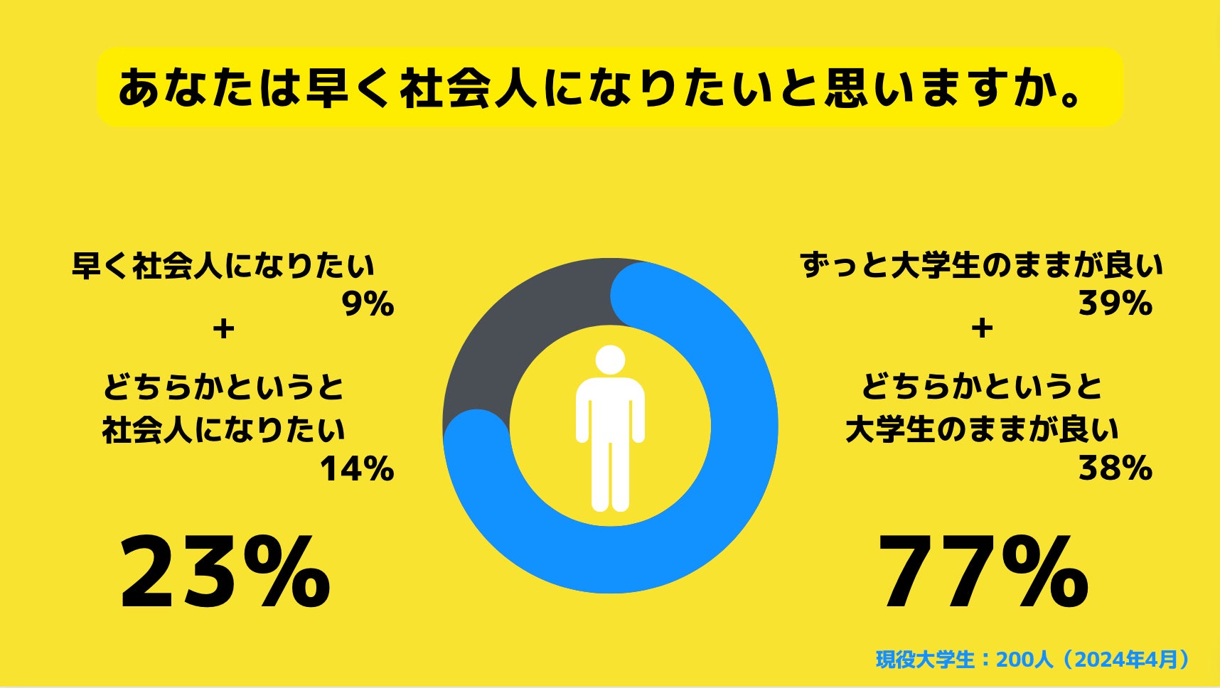調査の結果、大学生の77%が大学生のままが良いと回答しました。