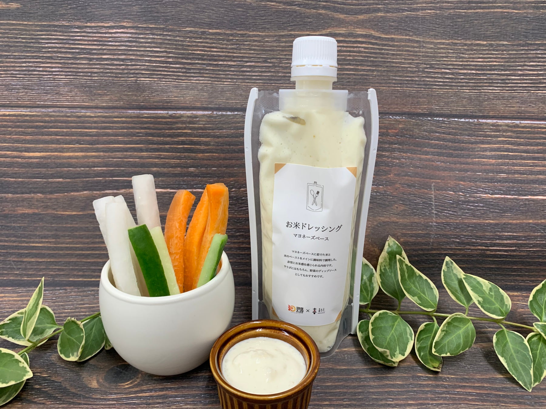 マヨネーズベースに喜多方産の茹でた米、米のペーストをメインに調味料で調理した、非常にお米を感じられる内容です。サラダにはもちろん、野菜のディップソースとしてもおすすめです。