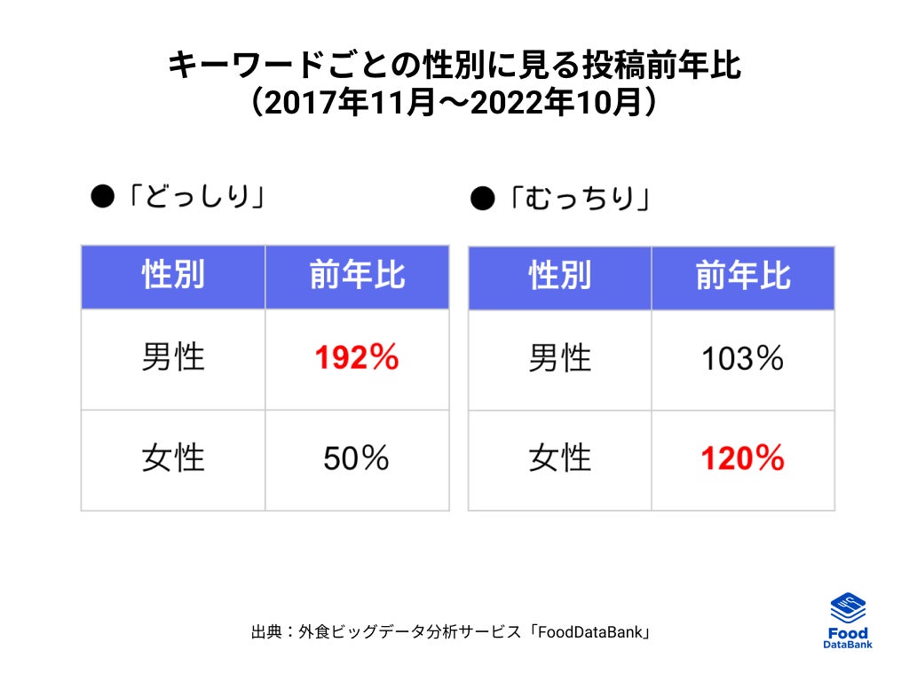 ⚫「キーワード」×「性別」で見る「どっしり」「むっちり」料理とは?