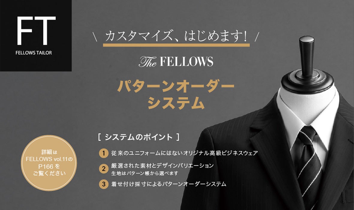この度、お客様の多様なライフスタイルとニーズにお応えするため、パターンオーダーシステム「FELLOWS TAILOR(フェローズテイラー)」を本格始動いたしました。
