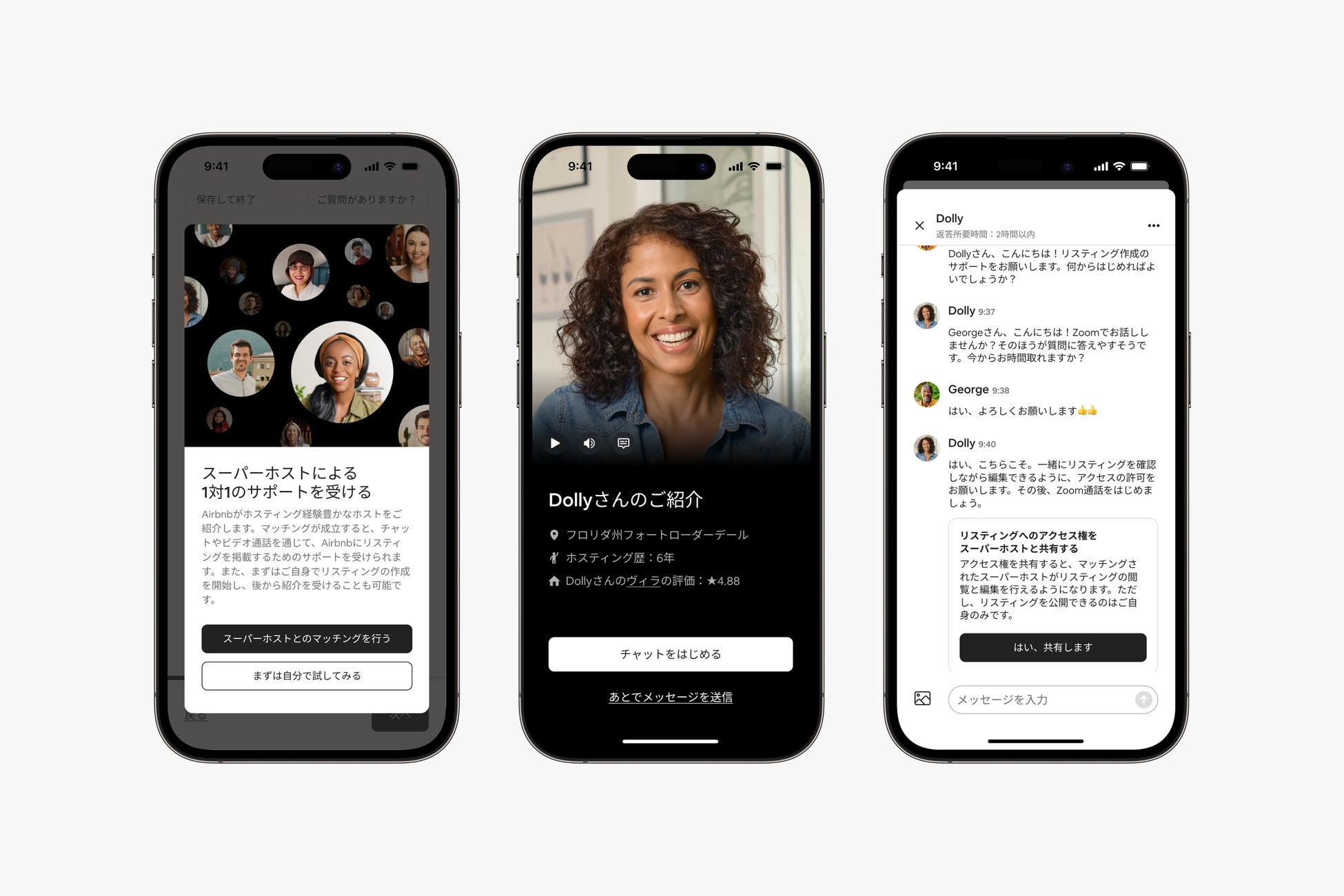 - 「Airbnbスタートツール」の導入:スーパーホストから無料で1対1のサポートを受けられ、Airbnbでホスティングを驚くほど簡単にはじめられる、新しいサポートシステムです。